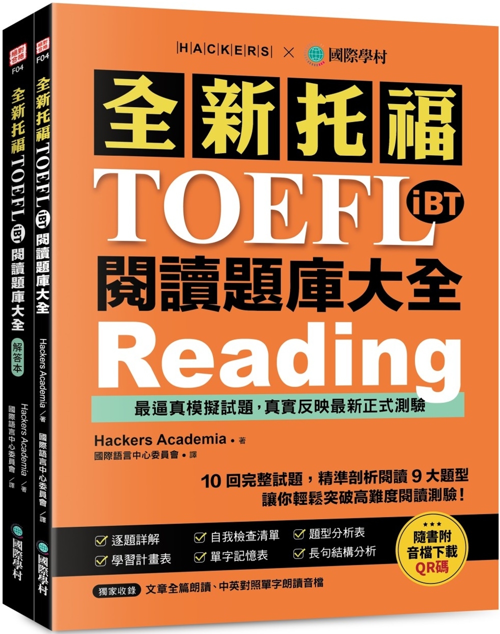 「Hackers」團隊堅持定期入場應考、剖析真實出題傾向,而成為考生心目中「最接近實際考題」的必備指南。繼長期暢銷霸榜的多益、雅思系列之後,同樣由「Hackers」團隊製作的TOEFL托福測驗題庫書,終於正式引進台灣!